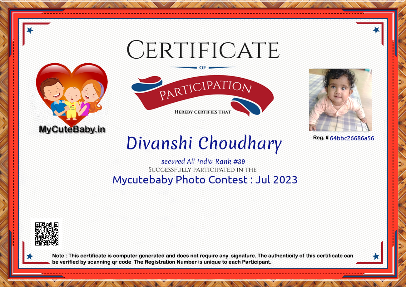 Participation certificate for all the participants whose mycutebaby votes are more than 1000.
