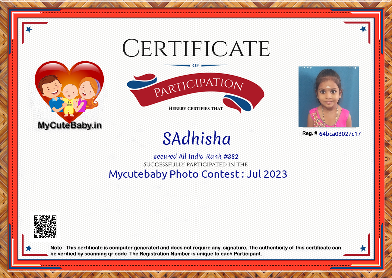 Participation certificate for all the participants whose mycutebaby votes are more than 1000.