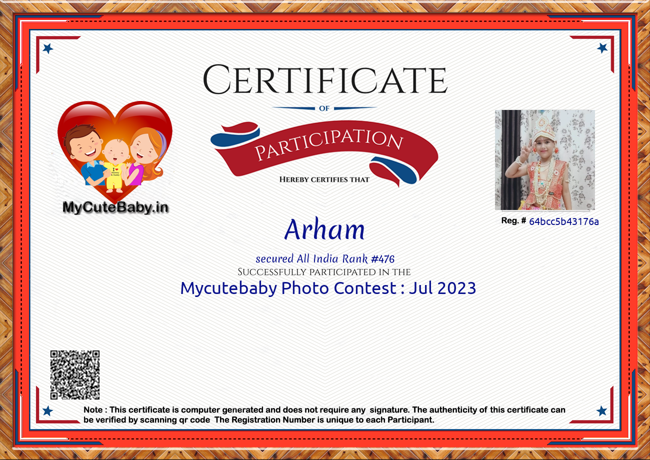 Participation certificate for all the participants whose mycutebaby votes are more than 1000.