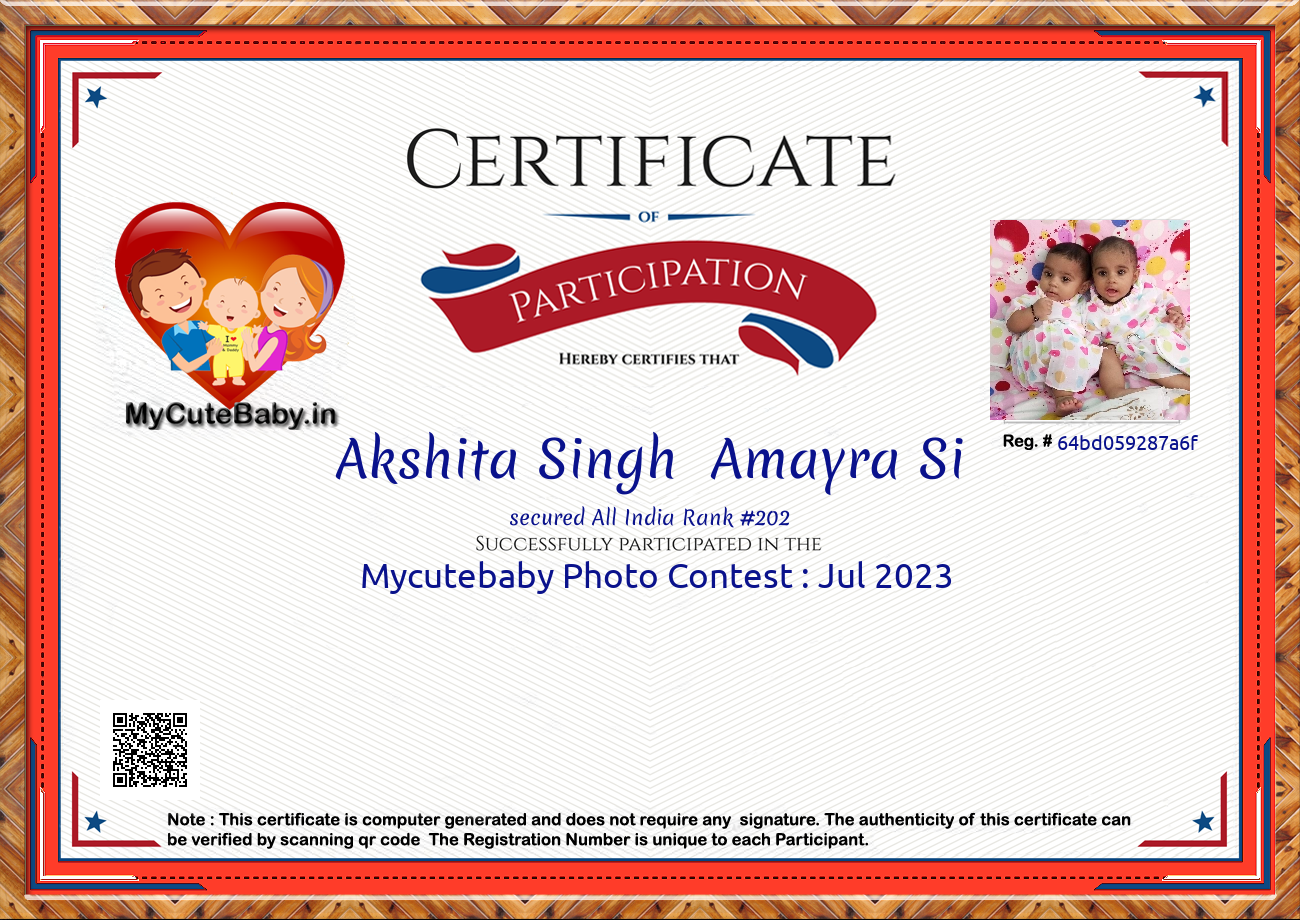 Participation certificate for all the participants whose mycutebaby votes are more than 1000.