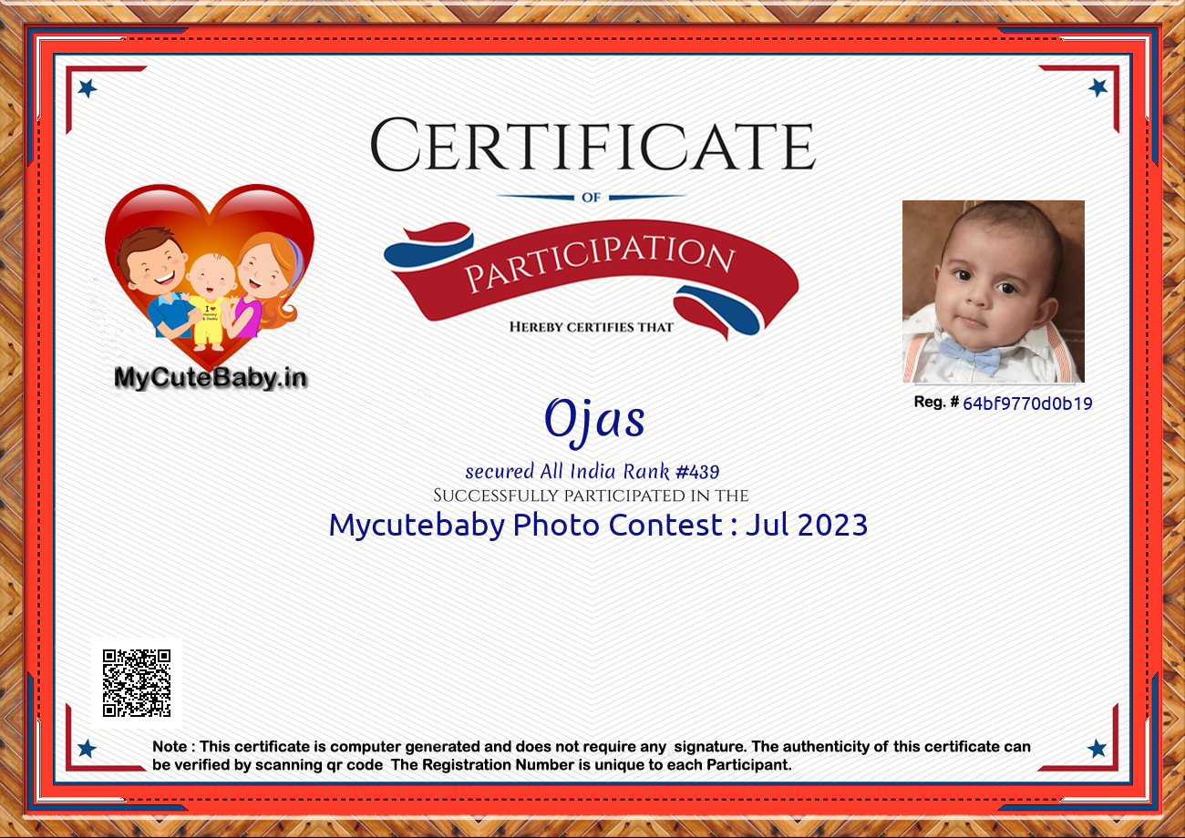 Participation certificate for all the participants whose mycutebaby votes are more than 1000.