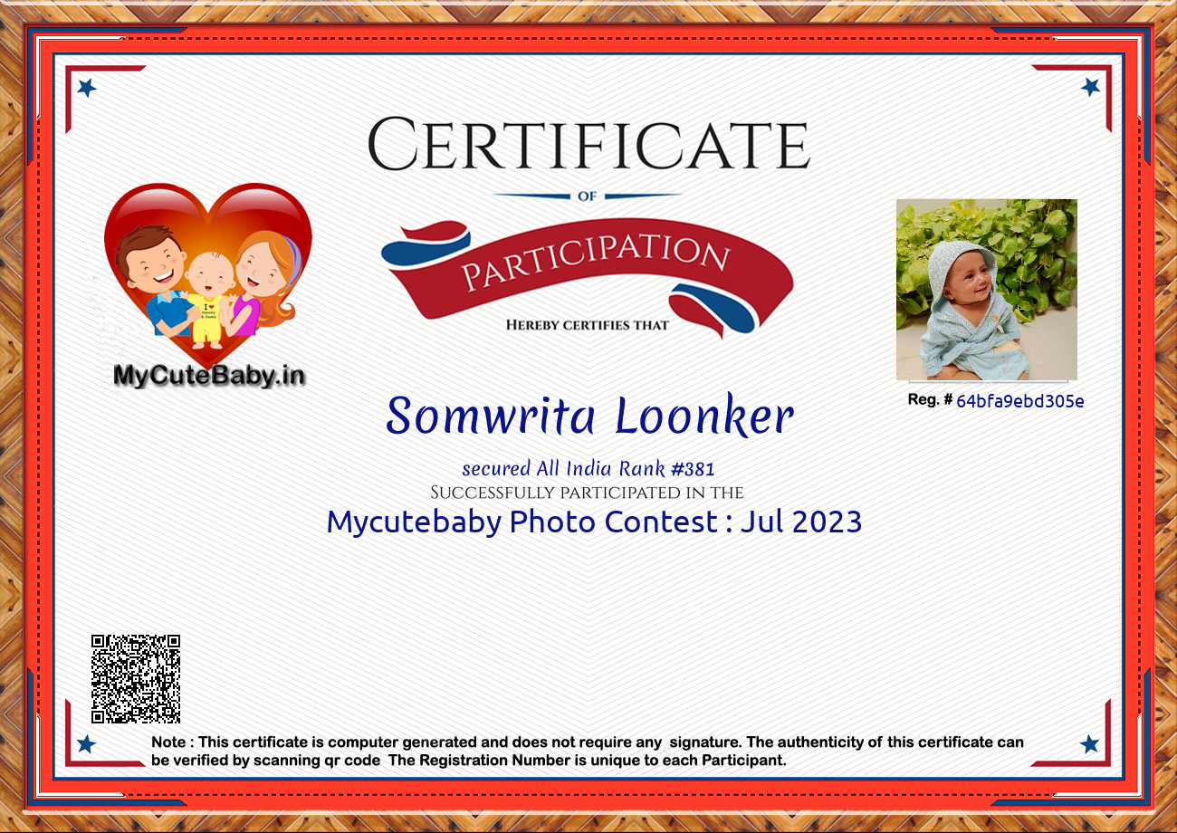 Participation certificate for all the participants whose mycutebaby votes are more than 1000.
