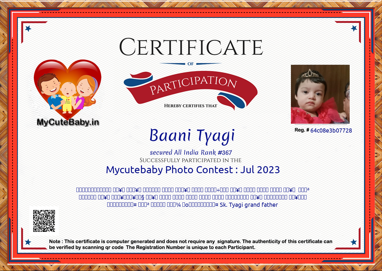 Participation certificate for all the participants whose mycutebaby votes are more than 1000.