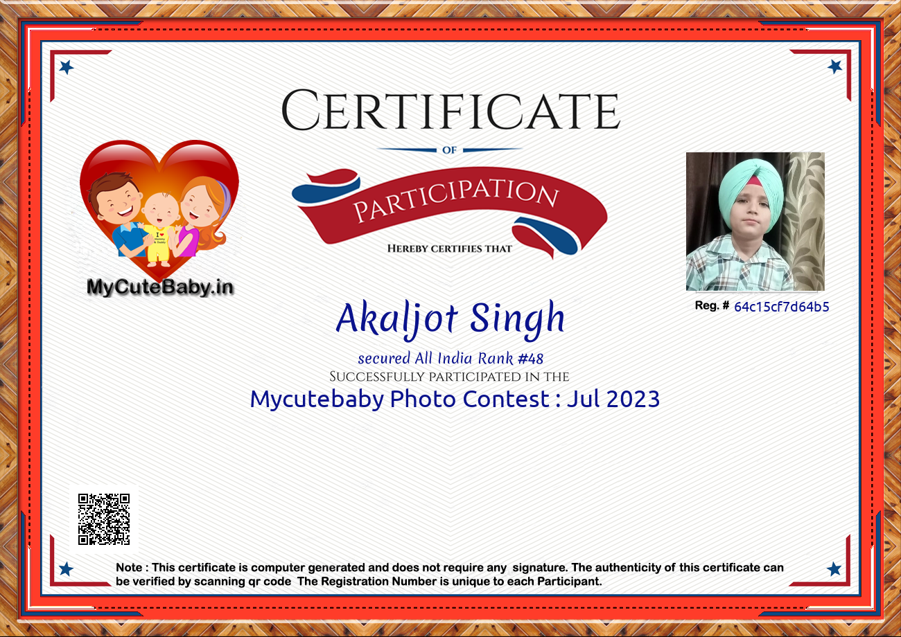 Participation certificate for all the participants whose mycutebaby votes are more than 1000.