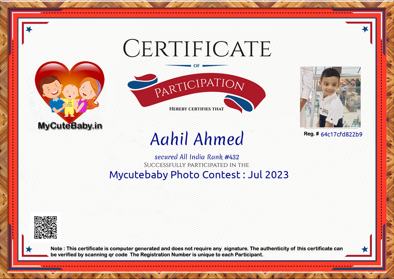 Participation certificate for all the participants whose mycutebaby votes are more than 1000.