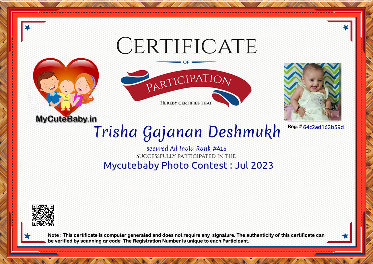 Participation certificate for all the participants whose mycutebaby votes are more than 1000.