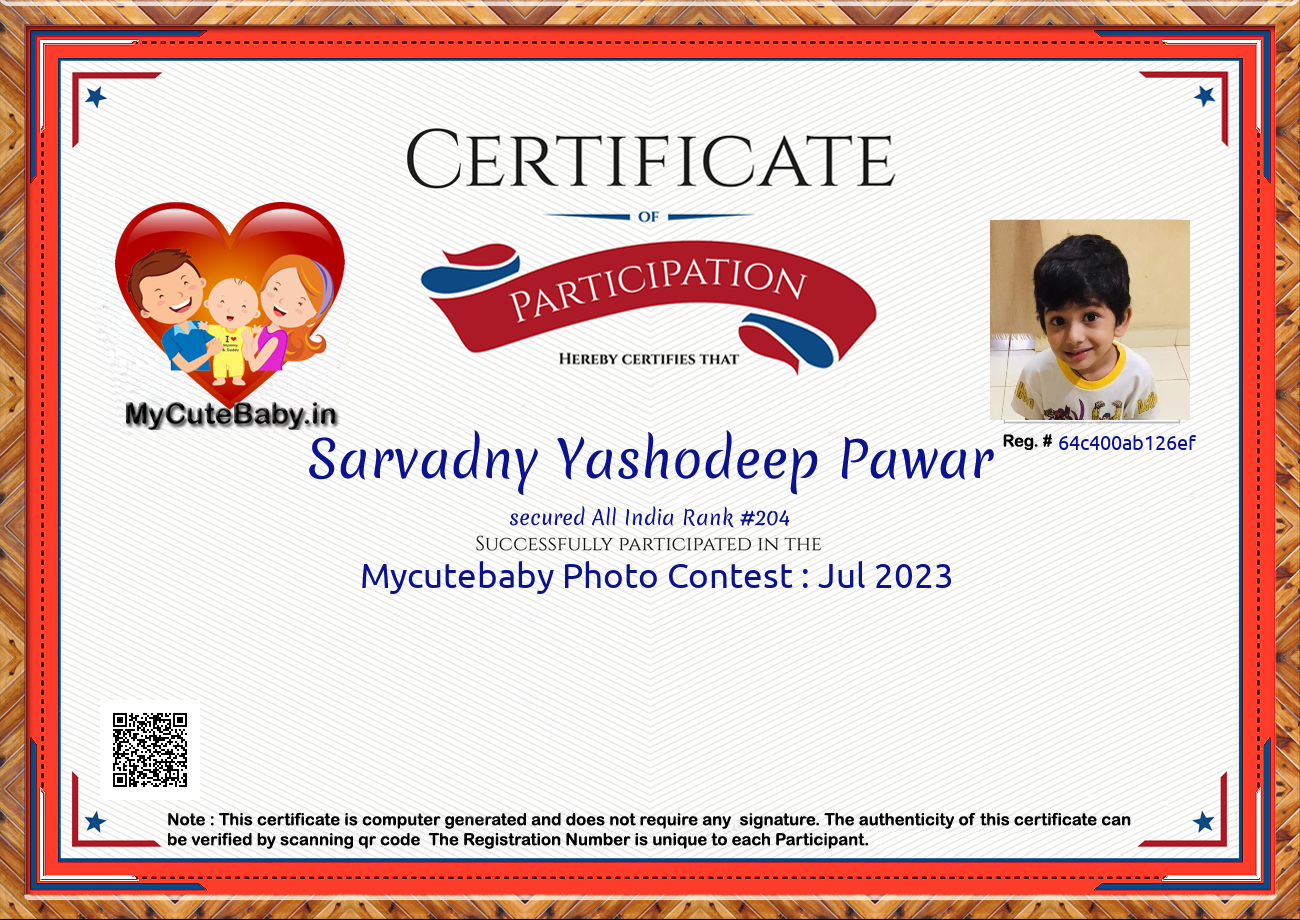 Participation certificate for all the participants whose mycutebaby votes are more than 1000.