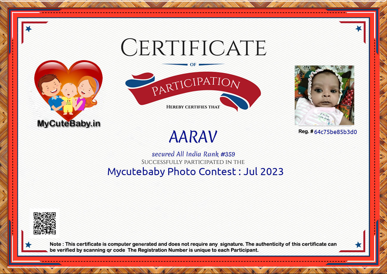 Participation certificate for all the participants whose mycutebaby votes are more than 1000.