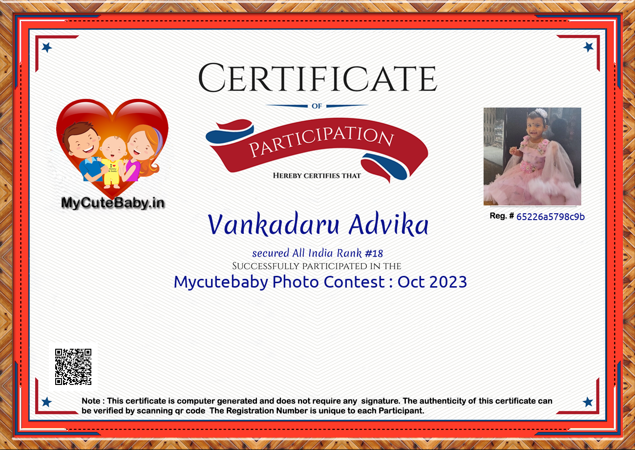 Participation certificate for all the participants whose mycutebaby votes are more than 1000.