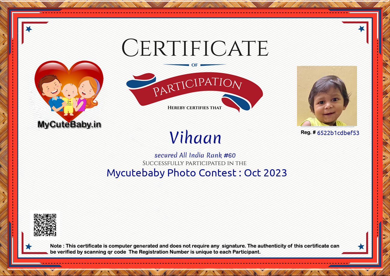 Participation certificate for all the participants whose mycutebaby votes are more than 1000.
