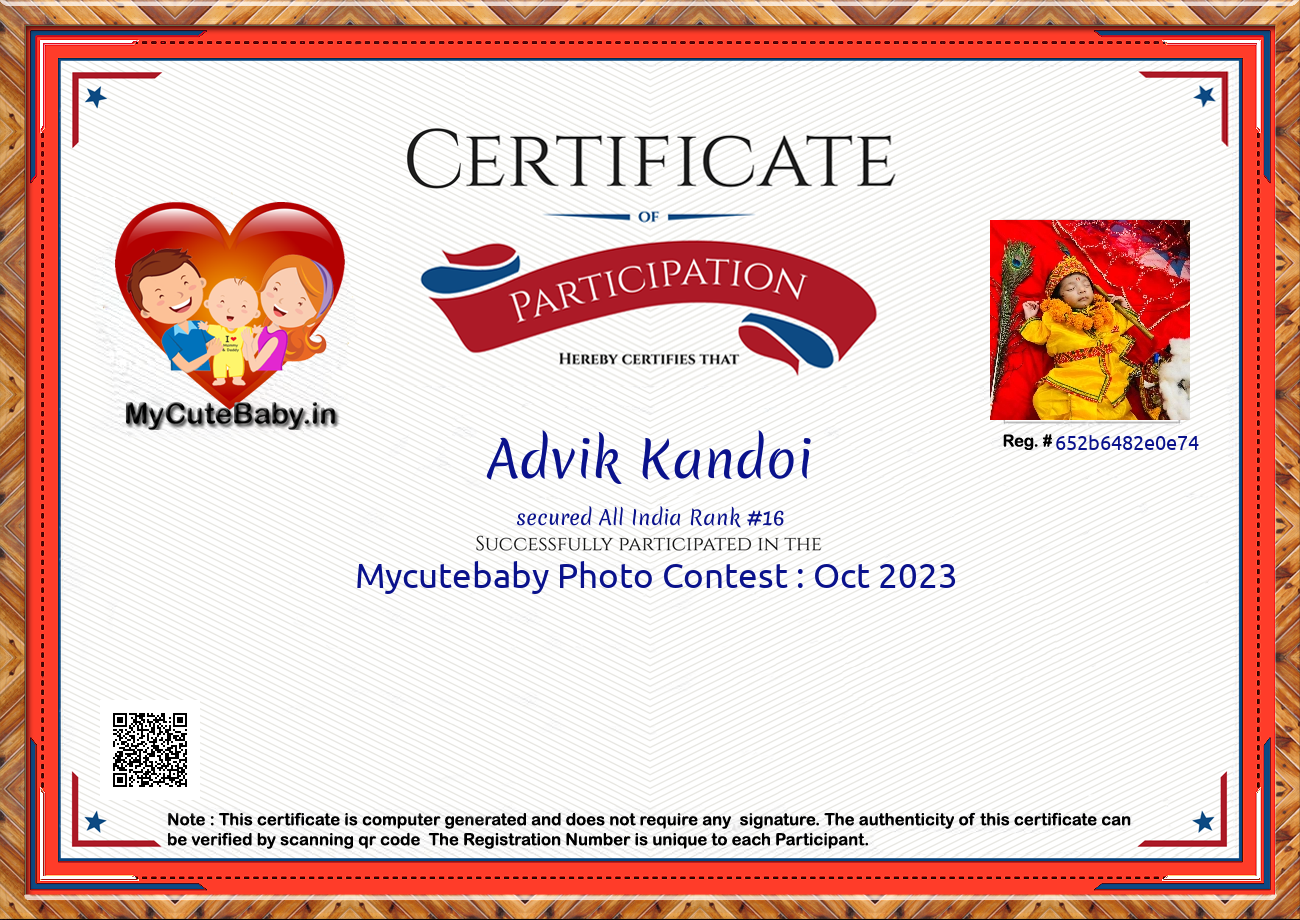 Participation certificate for all the participants whose mycutebaby votes are more than 1000.