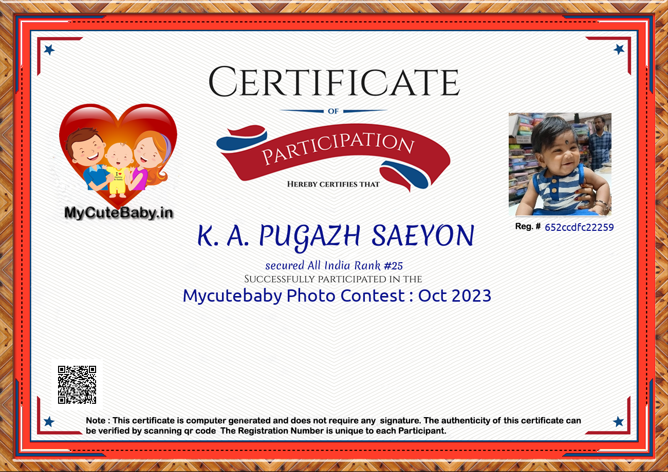 Participation certificate for all the participants whose mycutebaby votes are more than 1000.