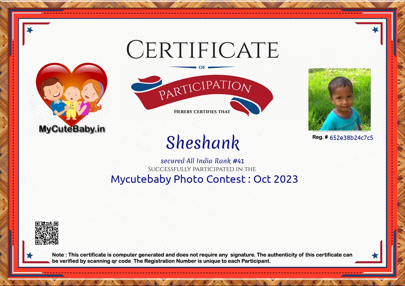 Participation certificate for all the participants whose mycutebaby votes are more than 1000.