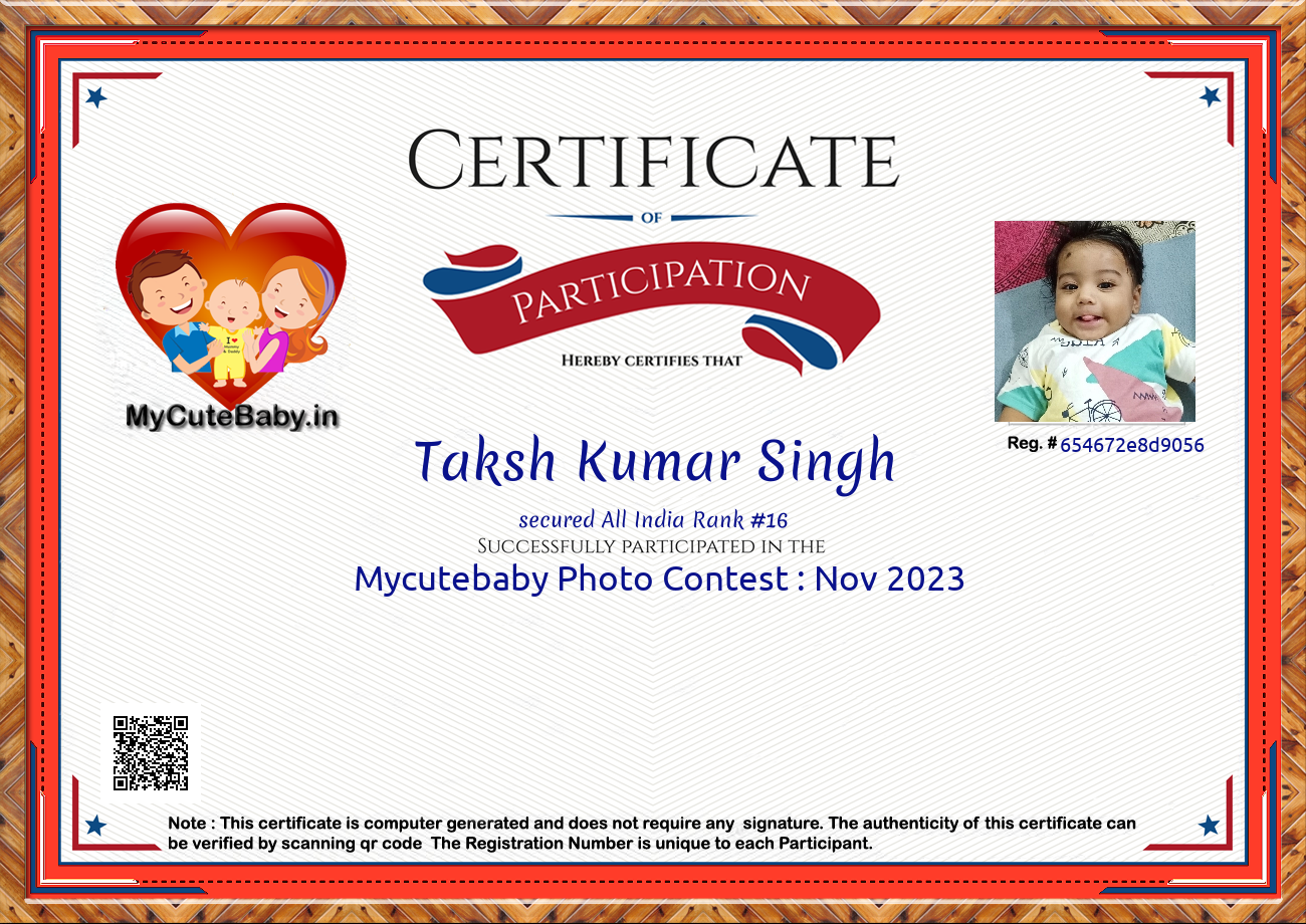 Participation certificate for all the participants whose mycutebaby votes are more than 1000.