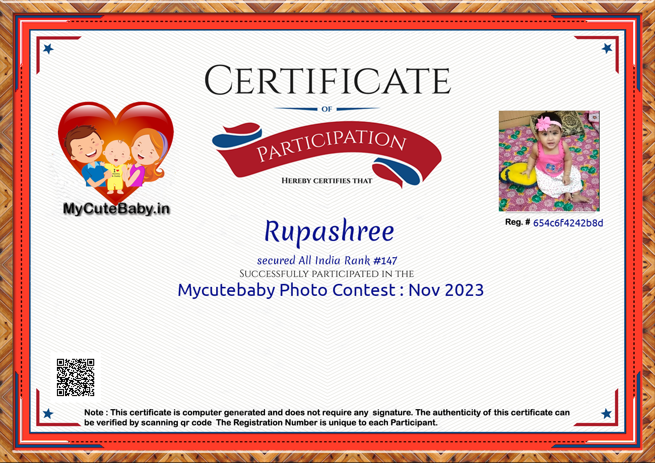 Participation certificate for all the participants whose mycutebaby votes are more than 1000.