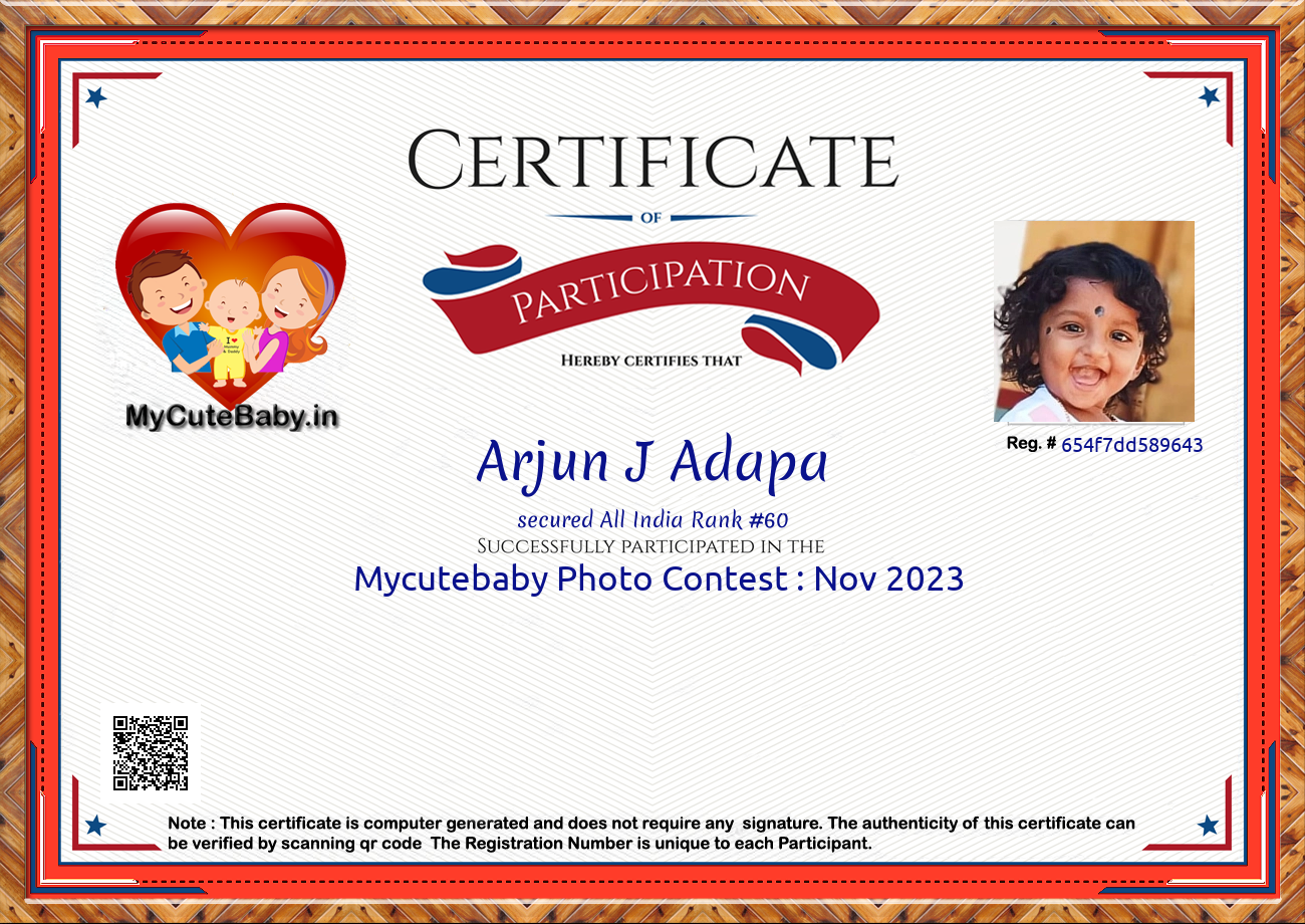 Participation certificate for all the participants whose mycutebaby votes are more than 1000.