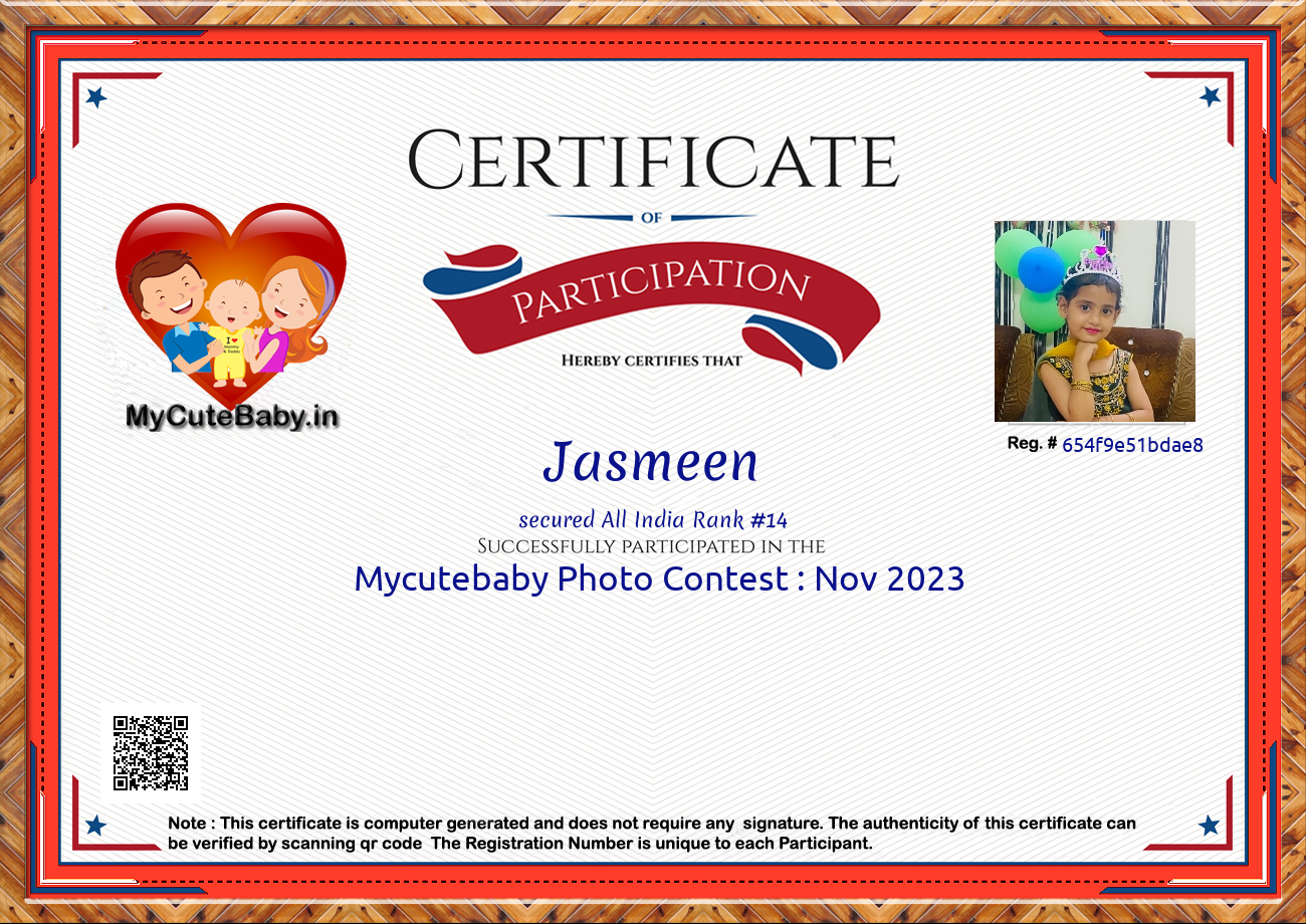 Participation certificate for all the participants whose mycutebaby votes are more than 1000.