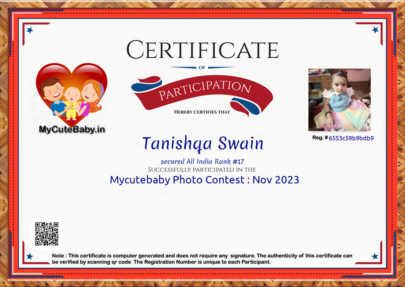 Participation certificate for all the participants whose mycutebaby votes are more than 1000.