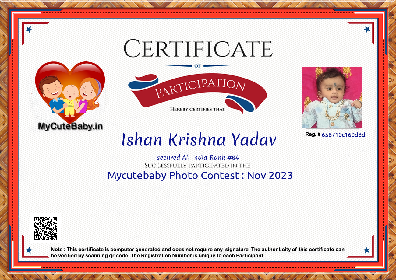 Participation certificate for all the participants whose mycutebaby votes are more than 1000.