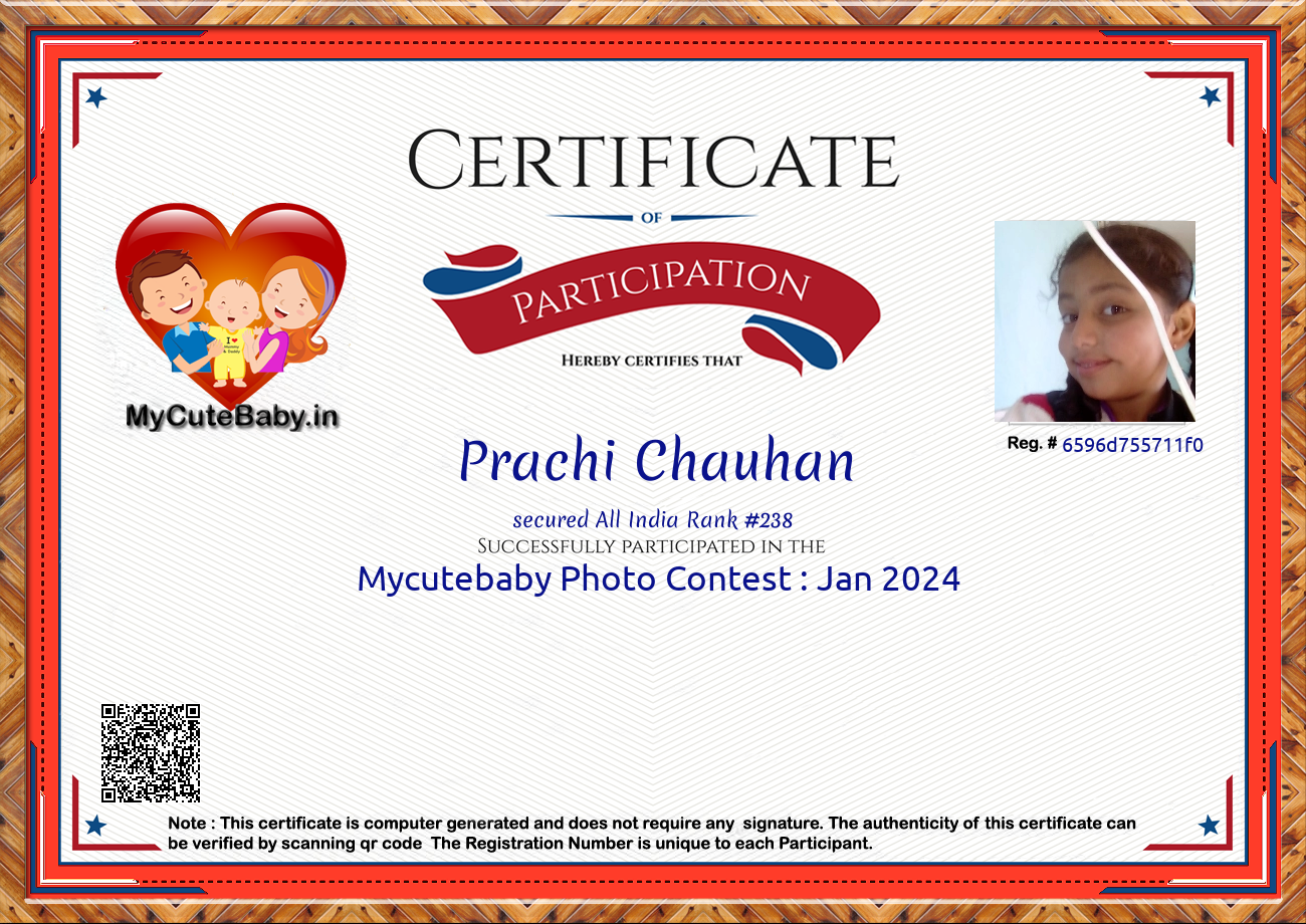 Participation certificate for all the participants whose mycutebaby votes are more than 1000.