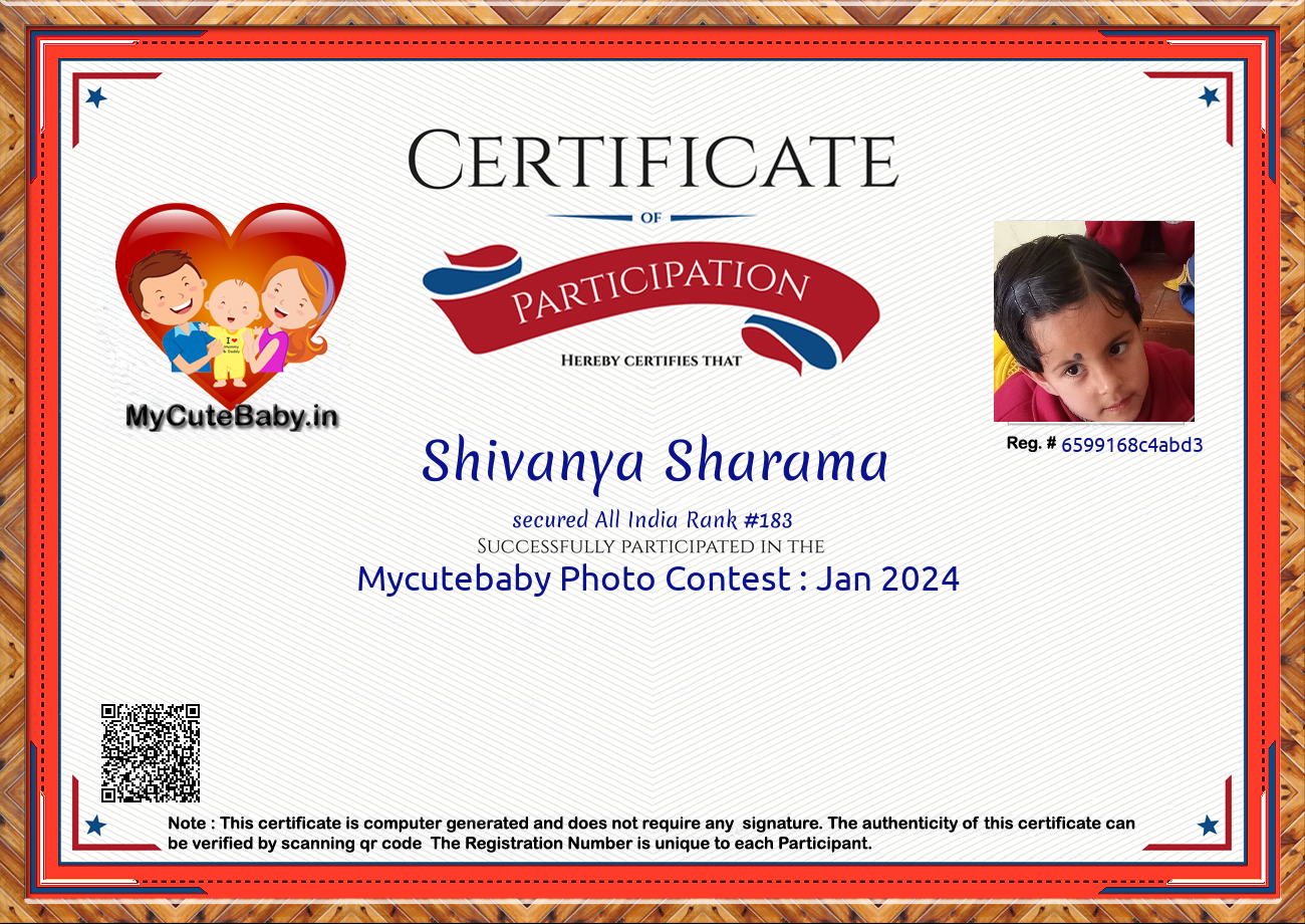 Participation certificate for all the participants whose mycutebaby votes are more than 1000.