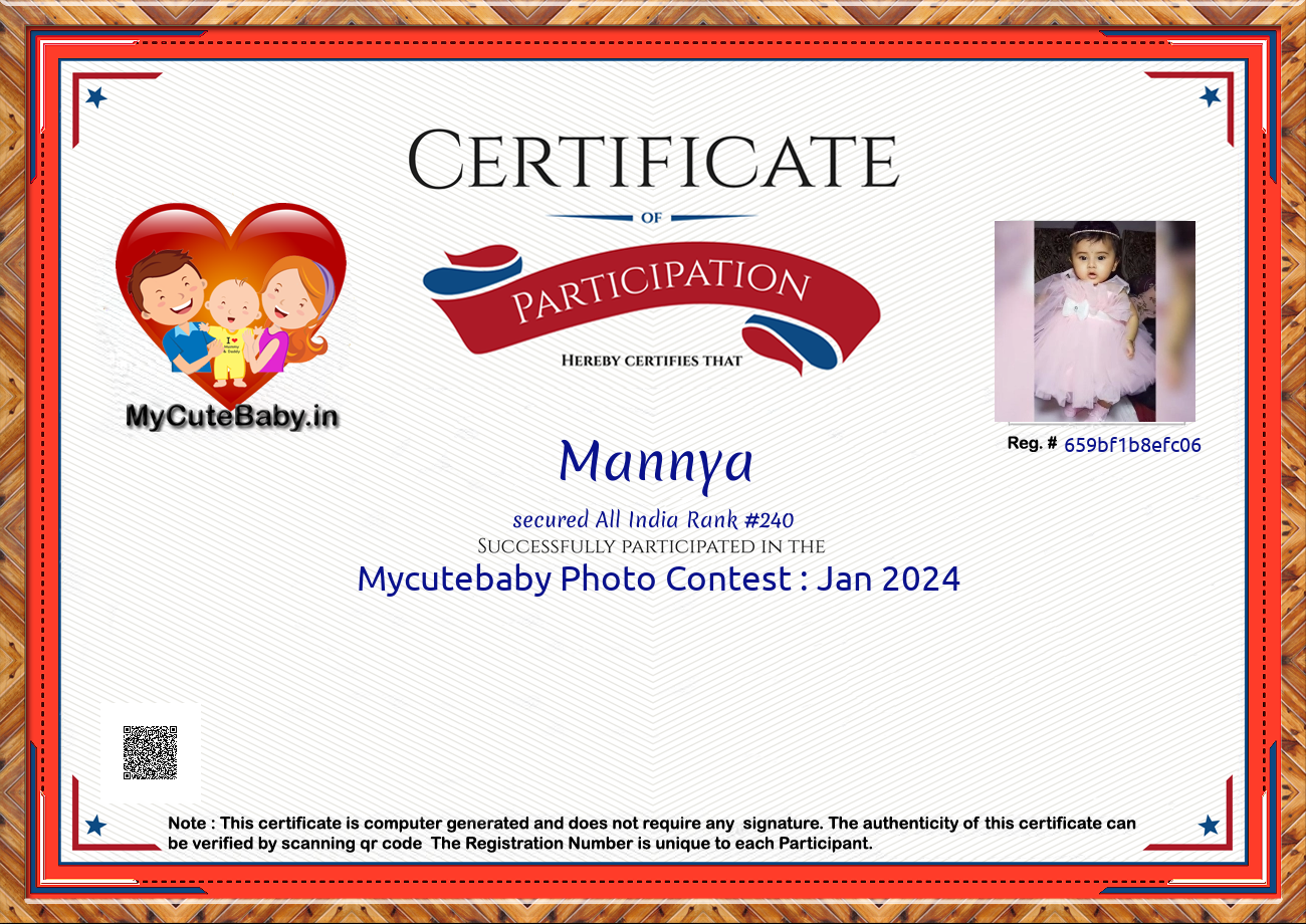 Participation certificate for all the participants whose mycutebaby votes are more than 1000.