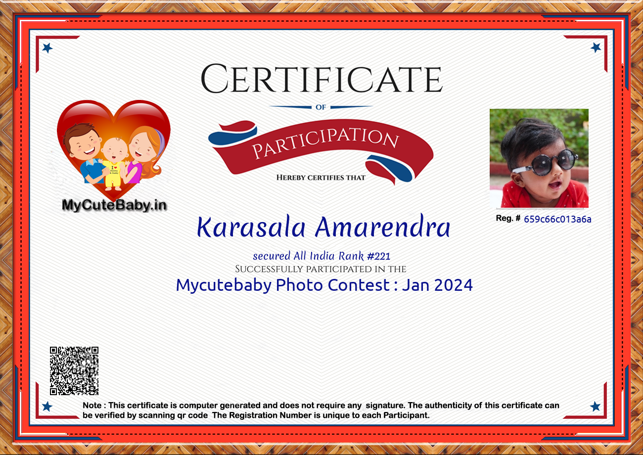 Participation certificate for all the participants whose mycutebaby votes are more than 1000.