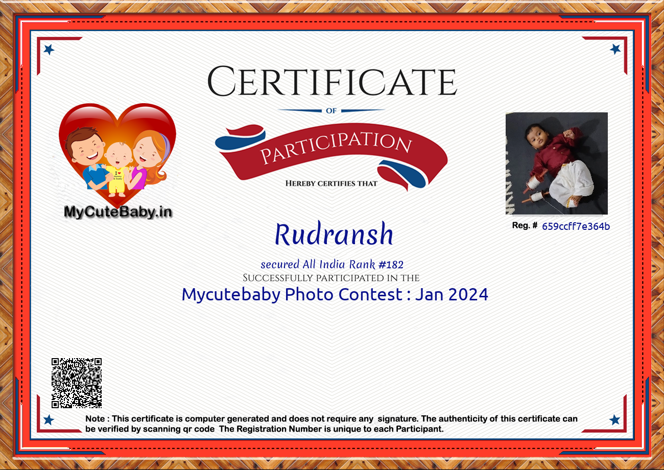 Participation certificate for all the participants whose mycutebaby votes are more than 1000.
