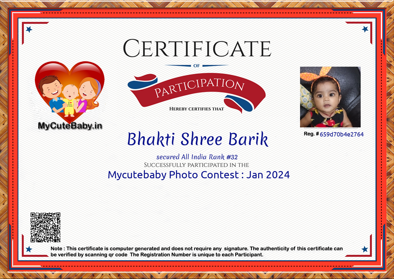 Participation certificate for all the participants whose mycutebaby votes are more than 1000.