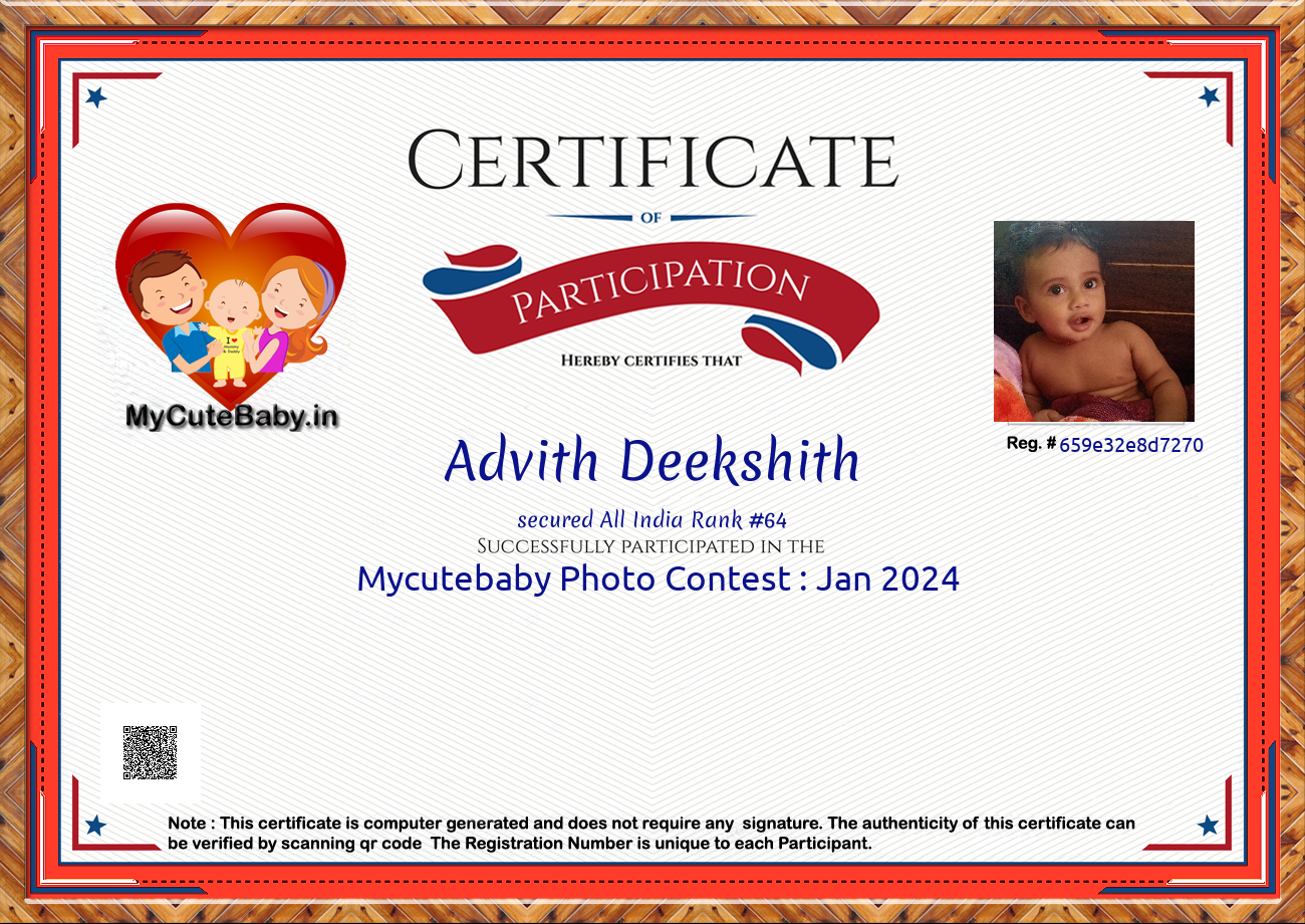 Participation certificate for all the participants whose mycutebaby votes are more than 1000.