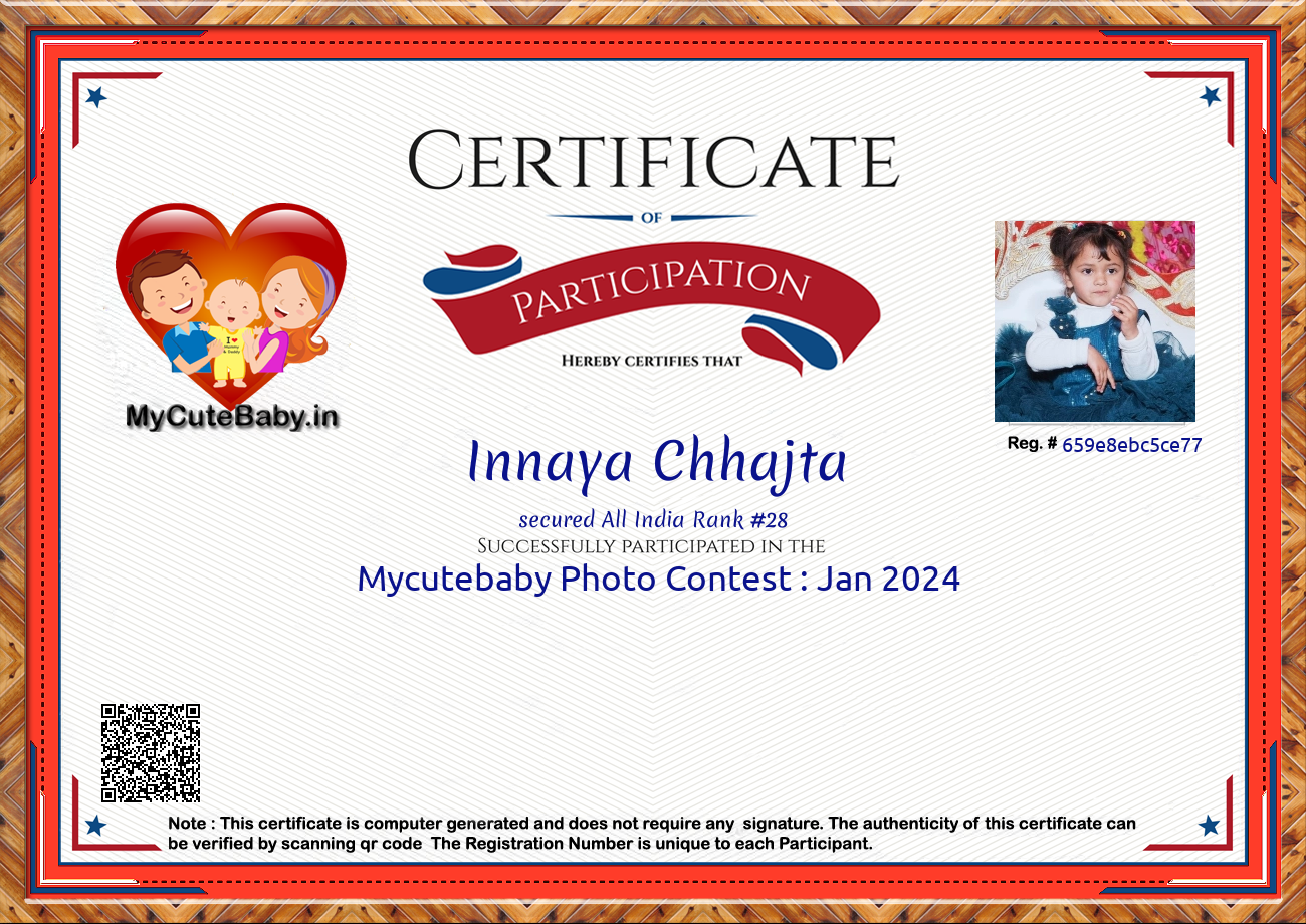 Participation certificate for all the participants whose mycutebaby votes are more than 1000.