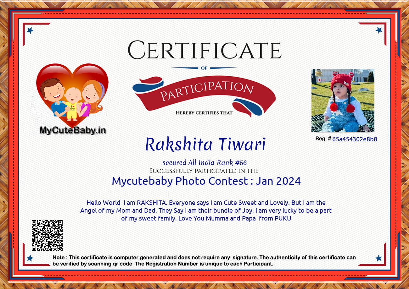 Participation certificate for all the participants whose mycutebaby votes are more than 1000.