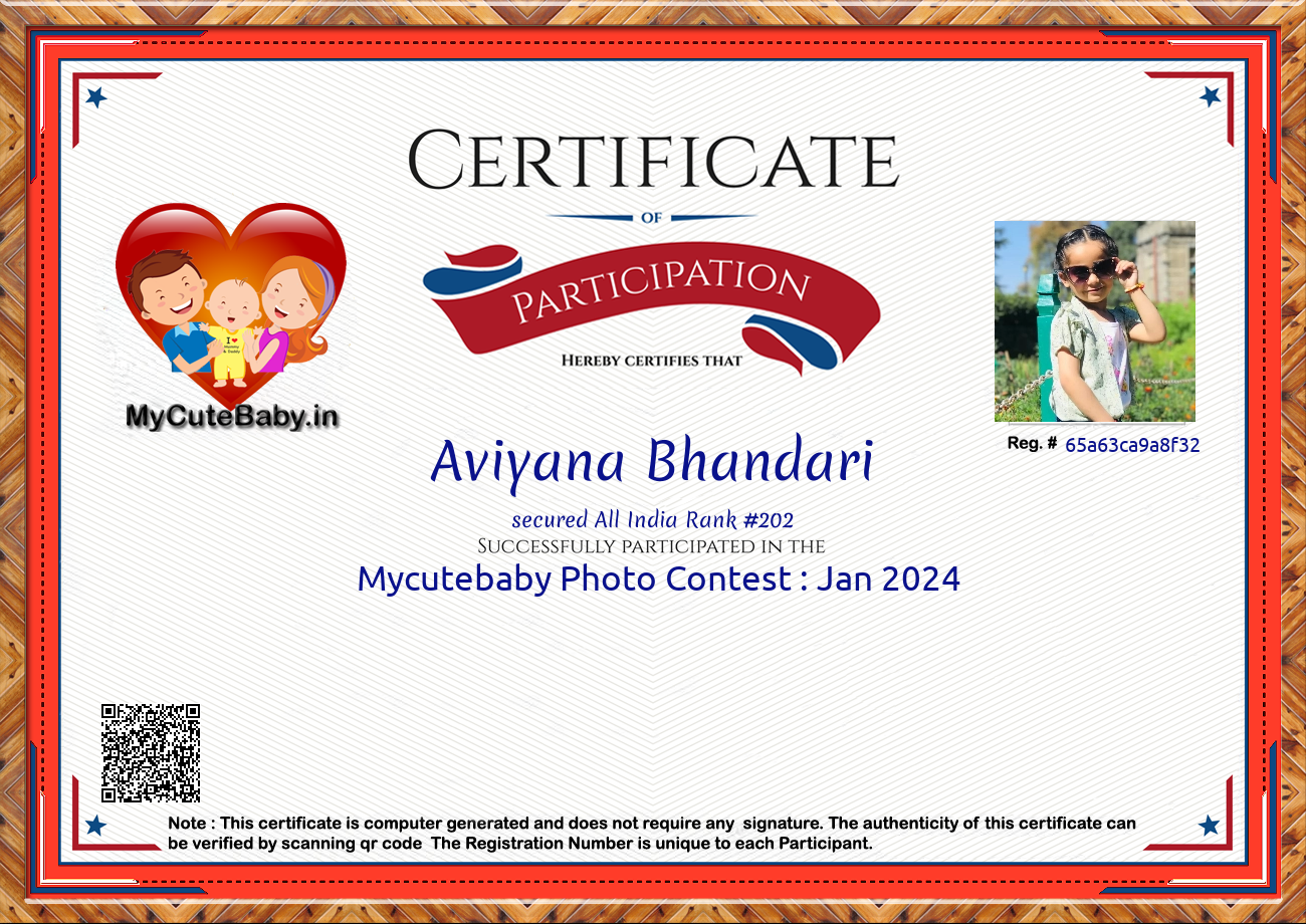 Participation certificate for all the participants whose mycutebaby votes are more than 1000.