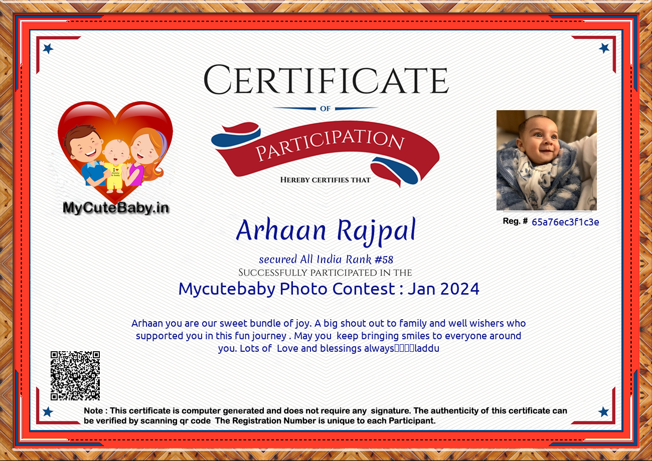 Participation certificate for all the participants whose mycutebaby votes are more than 1000.
