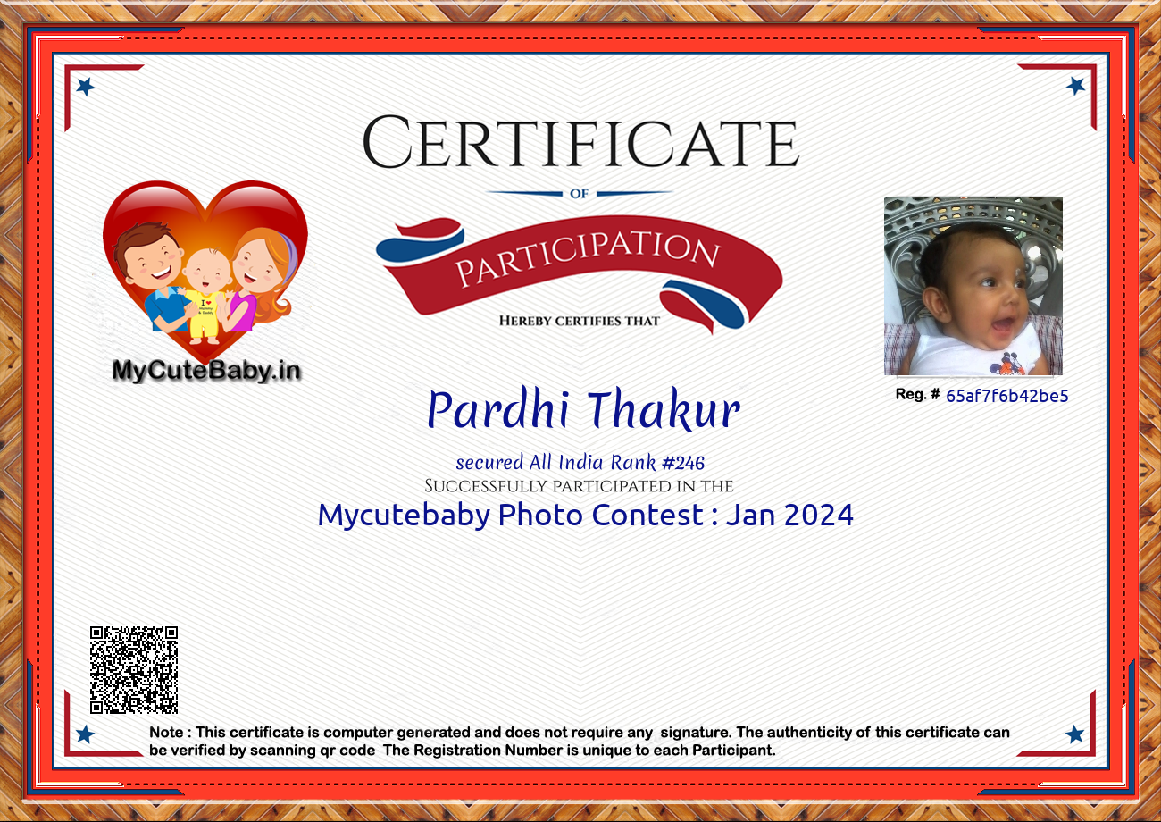 Participation certificate for all the participants whose mycutebaby votes are more than 1000.