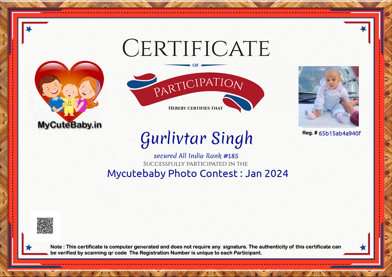 Participation certificate for all the participants whose mycutebaby votes are more than 1000.