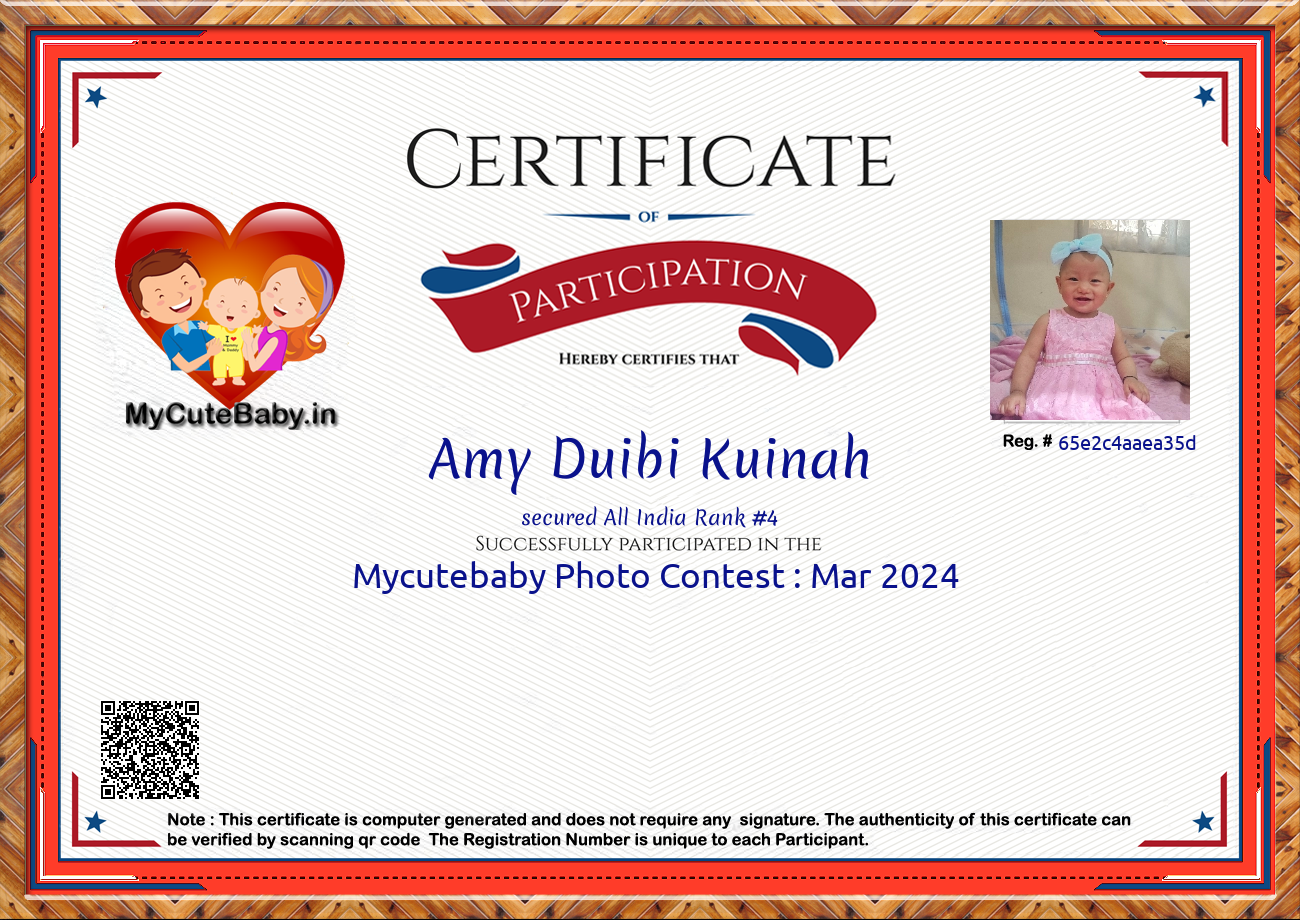 Participation certificate for all the participants whose mycutebaby votes are more than 1000.