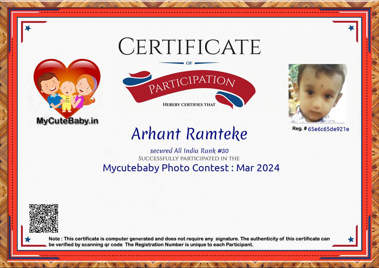 Participation certificate for all the participants whose mycutebaby votes are more than 1000.