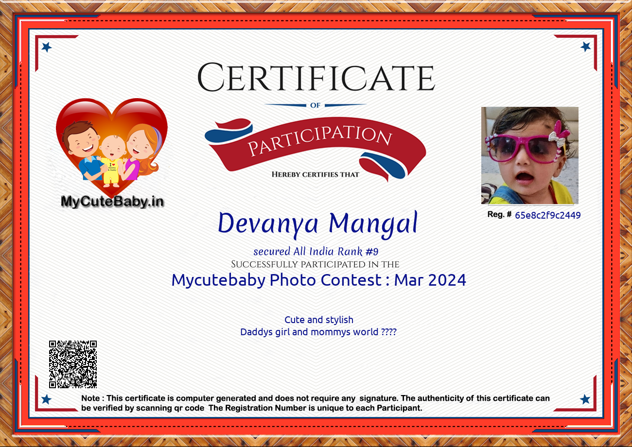 Participation certificate for all the participants whose mycutebaby votes are more than 1000.