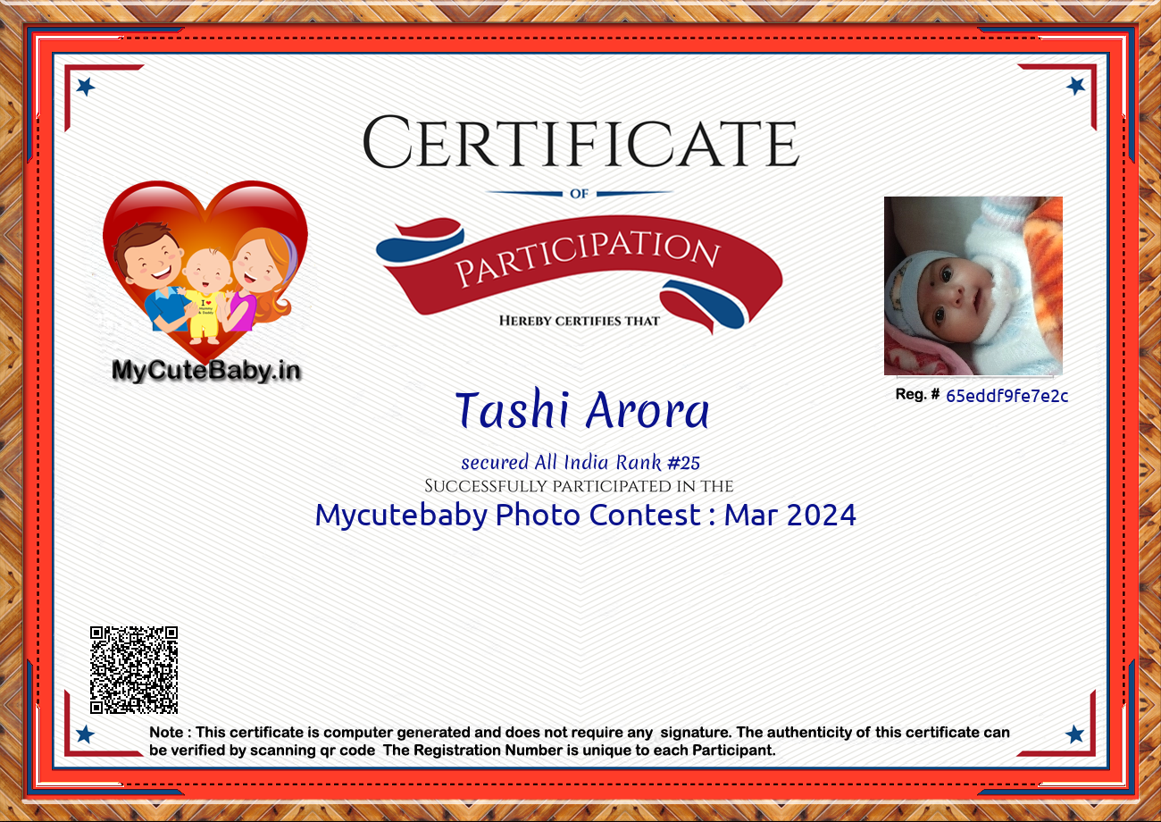 Participation certificate for all the participants whose mycutebaby votes are more than 1000.