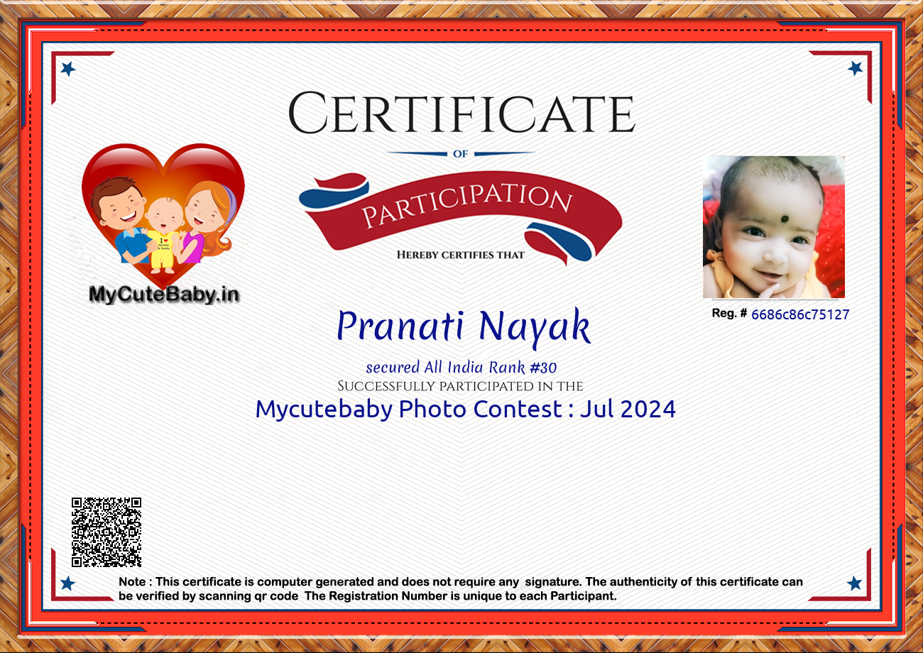 Participation certificate for all the participants whose mycutebaby votes are more than 1000.
