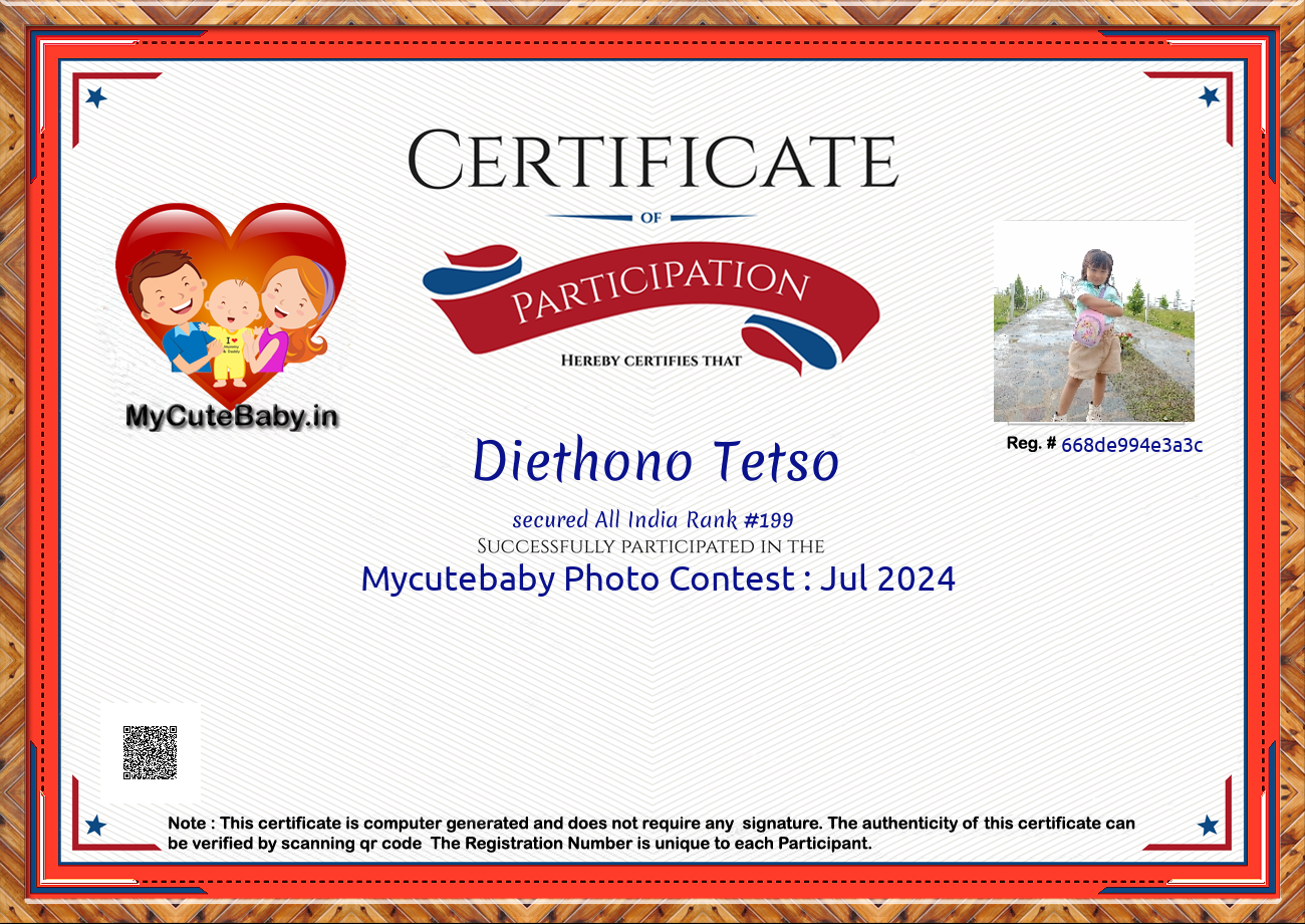 Participation certificate for all the participants whose mycutebaby votes are more than 1000.