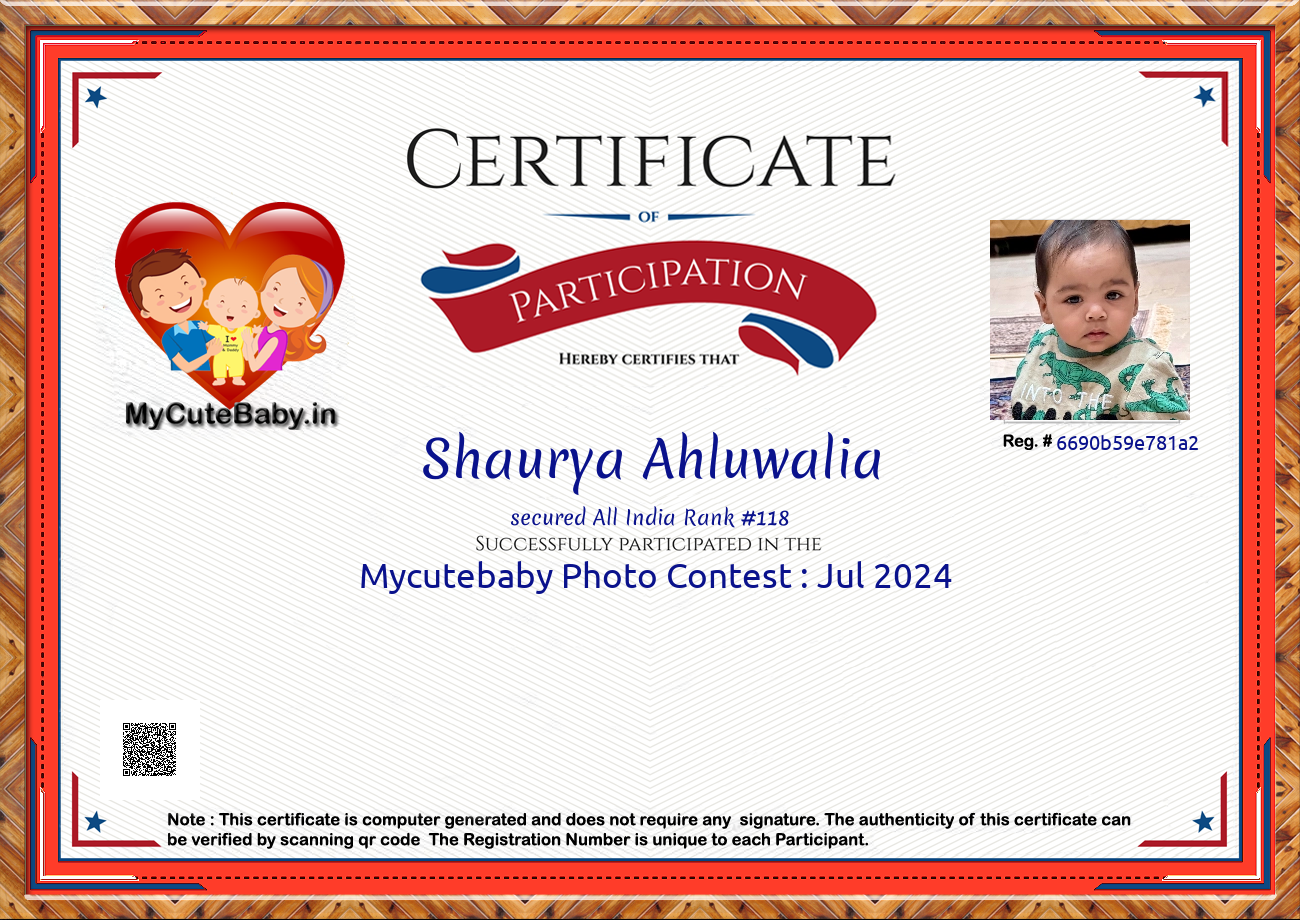 Participation certificate for all the participants whose mycutebaby votes are more than 1000.