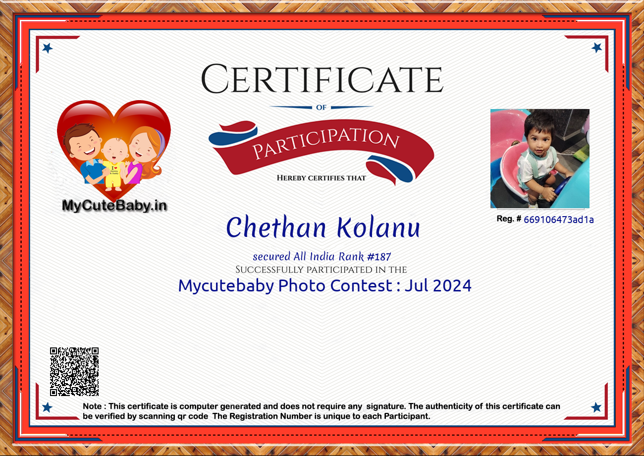 Participation certificate for all the participants whose mycutebaby votes are more than 1000.