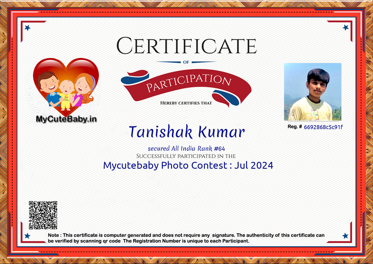 Participation certificate for all the participants whose mycutebaby votes are more than 1000.