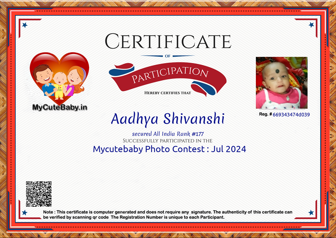 Participation certificate for all the participants whose mycutebaby votes are more than 1000.
