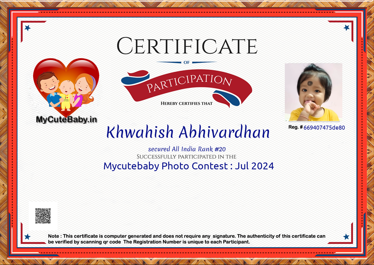 Participation certificate for all the participants whose mycutebaby votes are more than 1000.