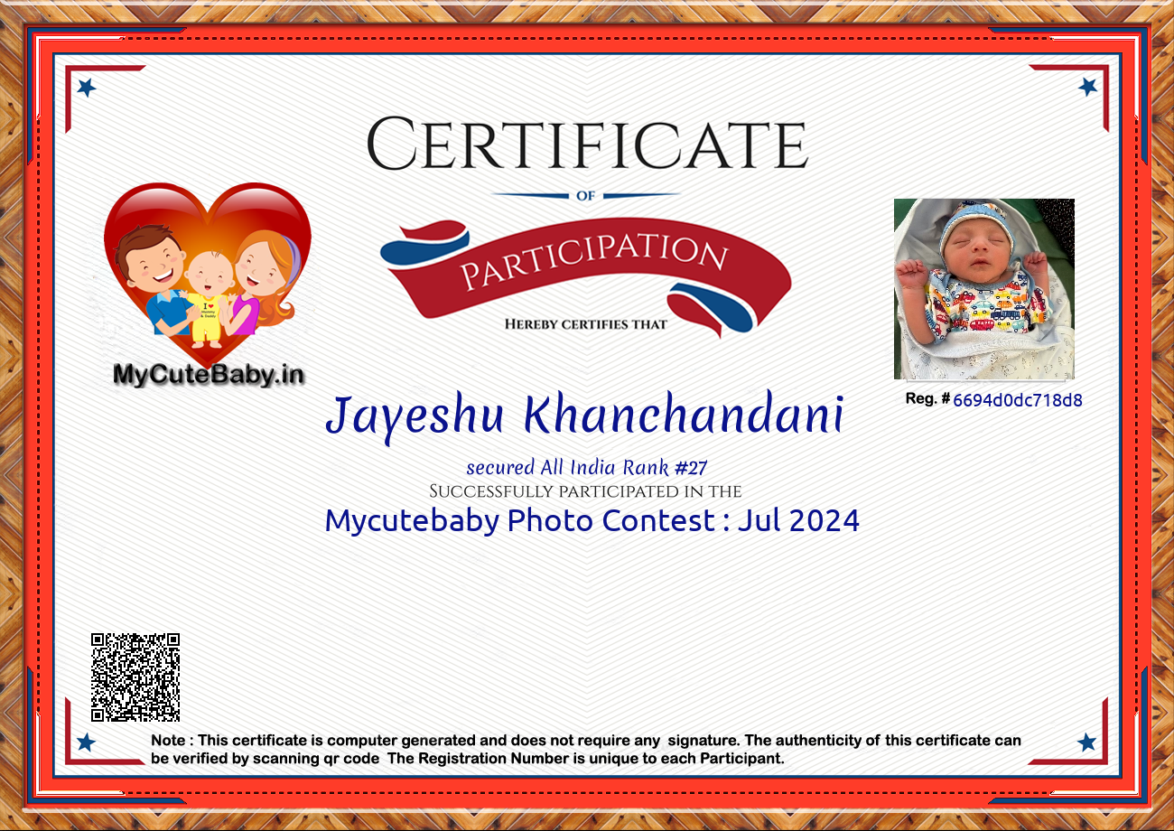 Participation certificate for all the participants whose mycutebaby votes are more than 1000.