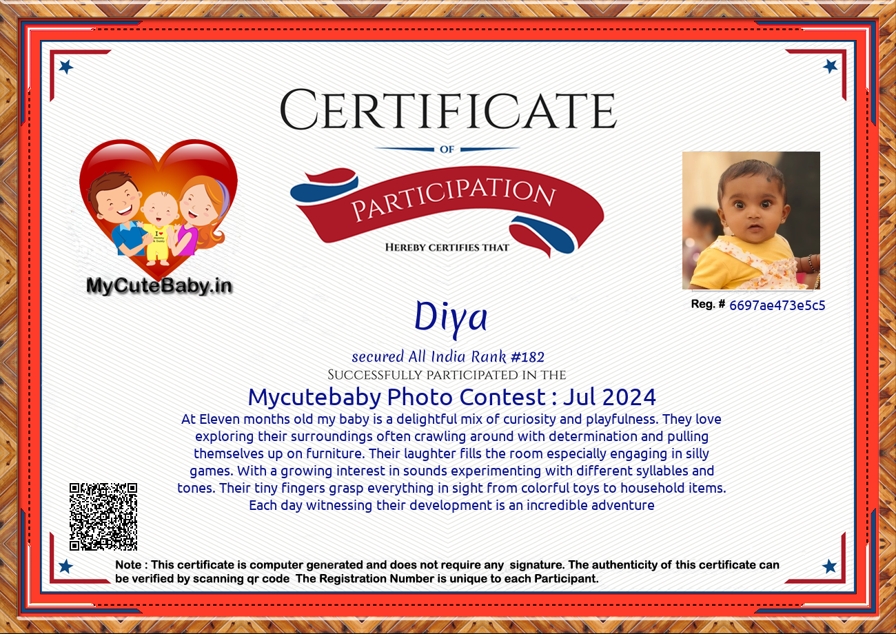 Participation certificate for all the participants whose mycutebaby votes are more than 1000.
