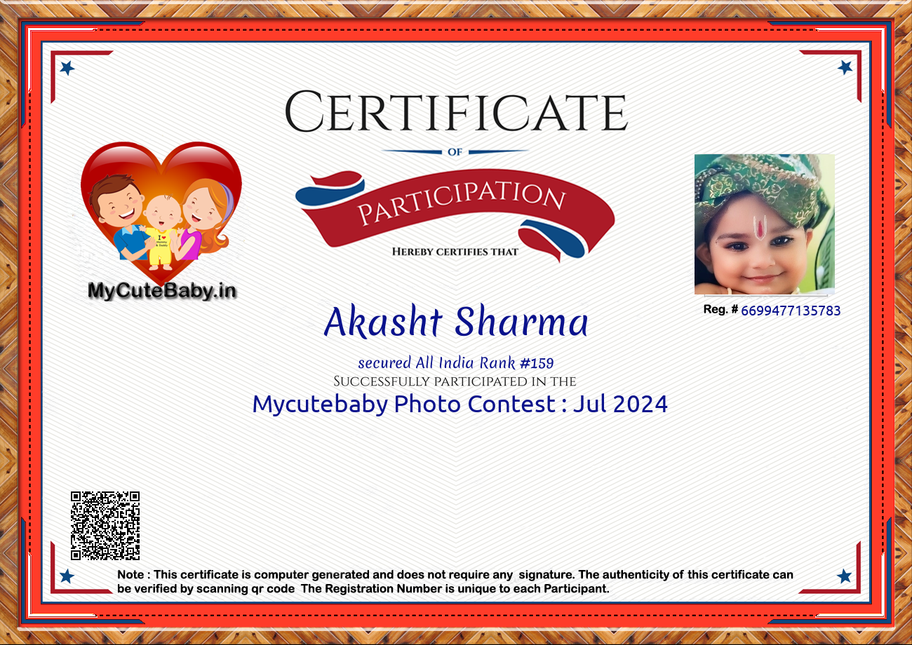 Participation certificate for all the participants whose mycutebaby votes are more than 1000.